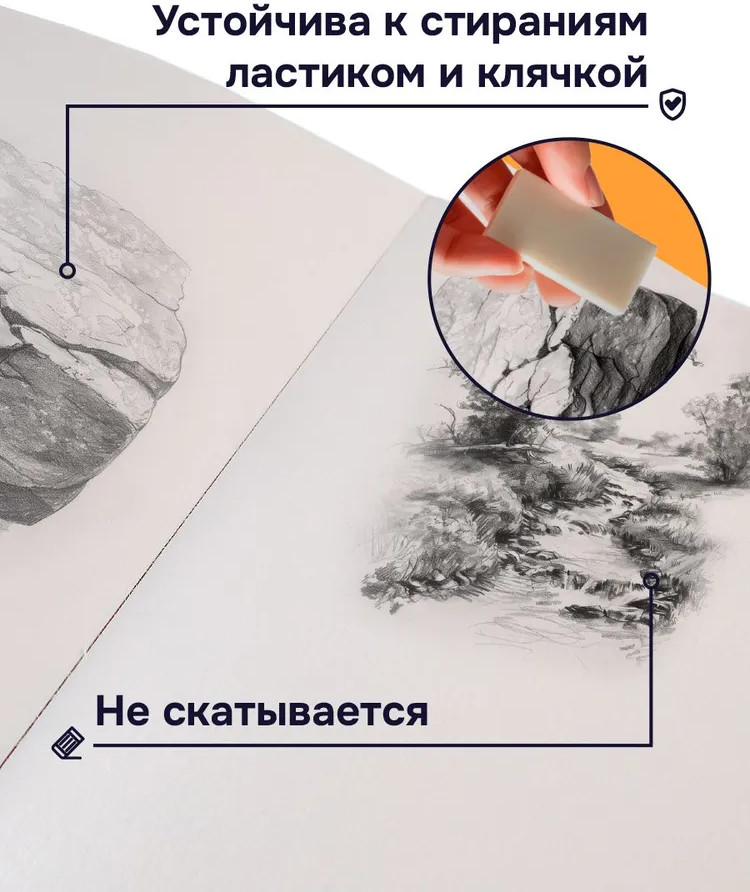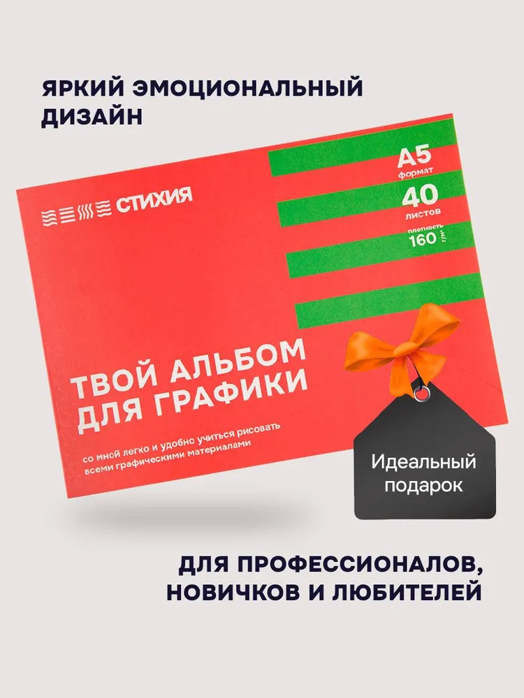 • идеально для учебы и хобби: альбом для графики «СТИХИЯ» подходит для учеников художественных школ, студентов, а также любителей графики. Его можно использовать для выполнения учебных заданий, зарисовок и художественных проектов;