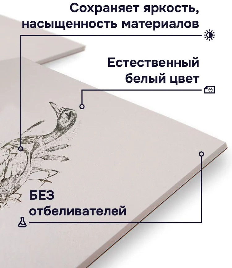 1. Отличное качество бумаги: альбом-склейка «СТИХИЯ» изготовлен из 100% целлюлозы с гладкой фактурой, что позволяет делать идеальные штриховки и прорисовки, обеспечивая высокое качество деталей и линий. Может быть использован для карандашей, пастели, туши и других графических материалов.