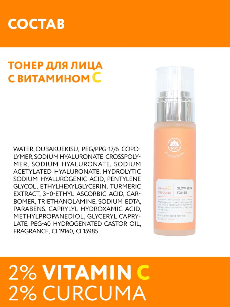 Name skin care Тонер для лица ухаживающий «Vitamin C & Curcuma Glow Skin Toner»