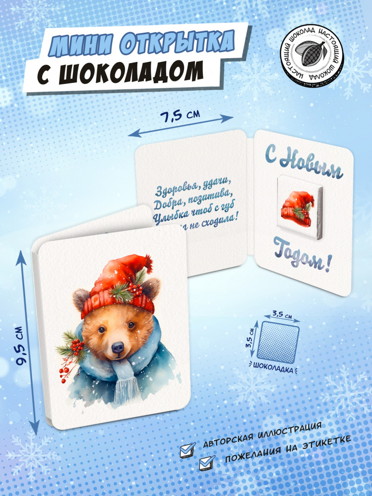 ChokoCat Мини-открытка с шоколадом «Мишка в шапке»