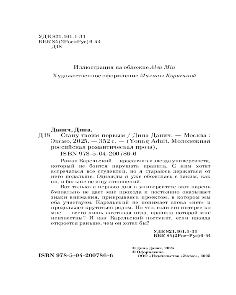 💳 Оплатить за товар можно при получении 🇰🇿 Есть бесплатная доставка по Казахстану от 1 дня 🎁 Копите бонусы с каждой покупки Серия: Young Adult. Молодежная российская романтическая проза Новинка молодежной российской романтической прозы! Легкая студенческая история о том, что бывает, если устроить спор на любовь! Внутри книги вас ждут: троп «от неприязни до любви», противостояние характеров, российский сеттинг и спор на девушку. Звезда университета Роман Карельский поспорил, что до Хэллоуина влюбит в себя отличницу-тихоню Олесю Селезневу. Вот только он еще не знает, что любовь не умеет играть по правилам... Обложка нарисована Alen Min... |