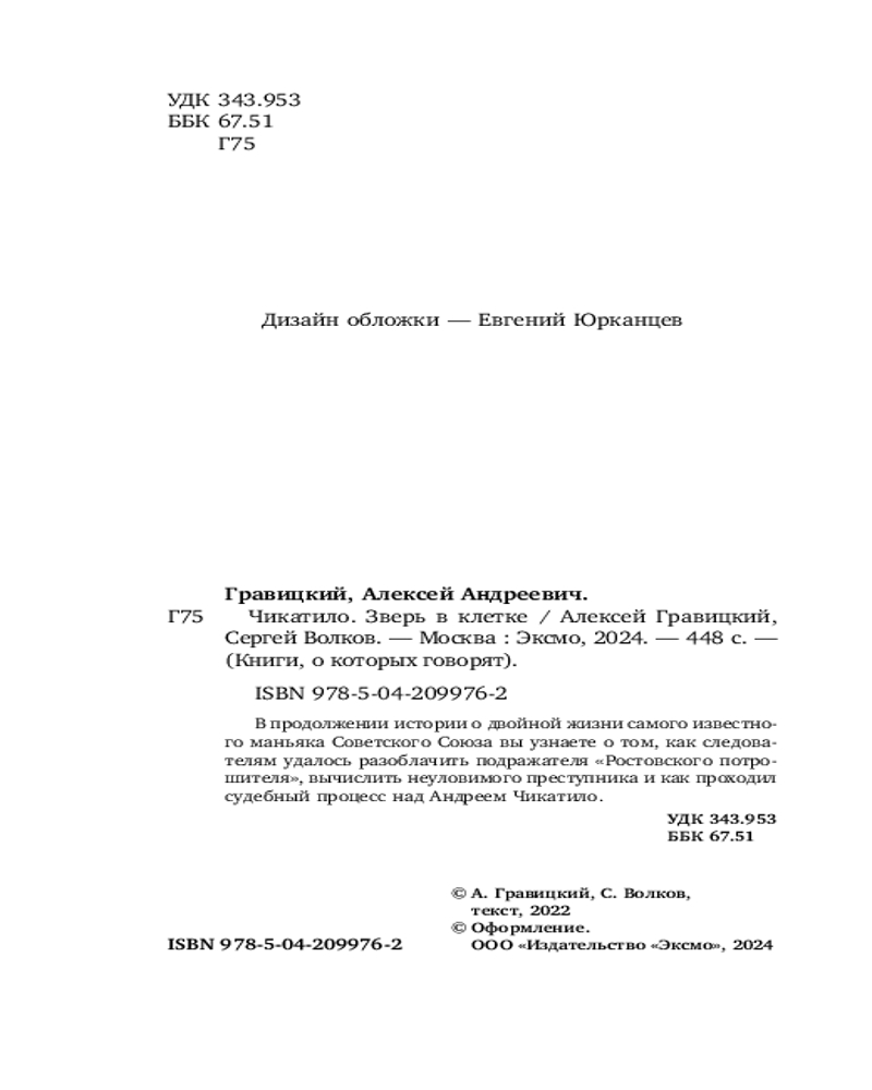 Чикатило. Зверь в клеткеСергей Юрьевич Волков, Алексей Андреевич Гравицкий -30% +61