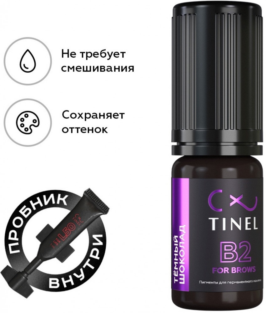 Tinel Пигмент для перманентного макияжа бровей, оттенок B2 Тёмный шоколад