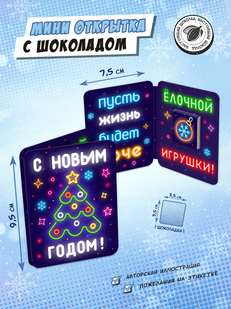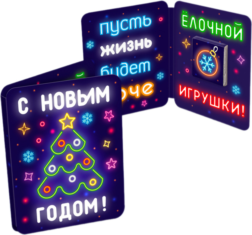 ChokoCat Мини-открытка с шоколадом «Неон. Ёлка»