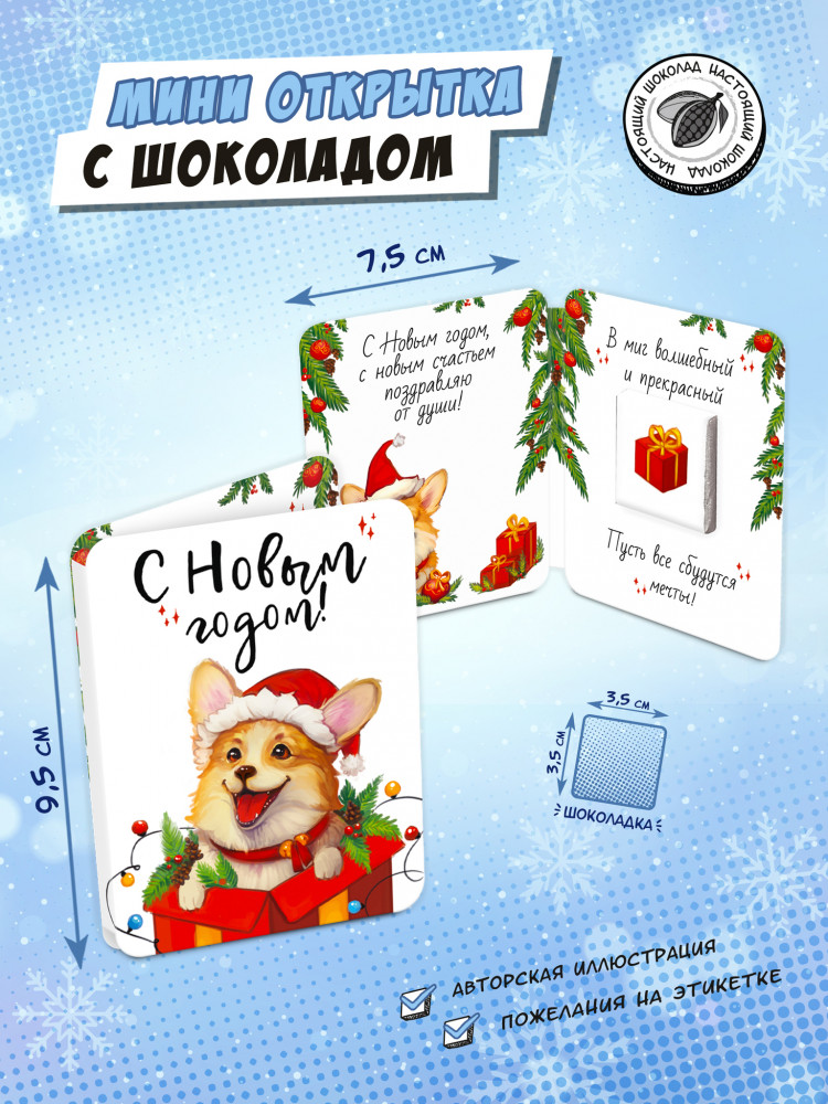 ChokoCat Мини-открытка с шоколадом «Корги в подарке»