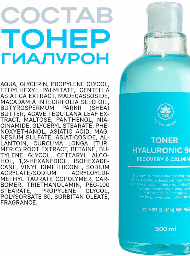 Name skin care Тонер для лица увлажняющий с гиалуроновой кислотой «Toner Hyaluronic 90% Recovery & Calming»