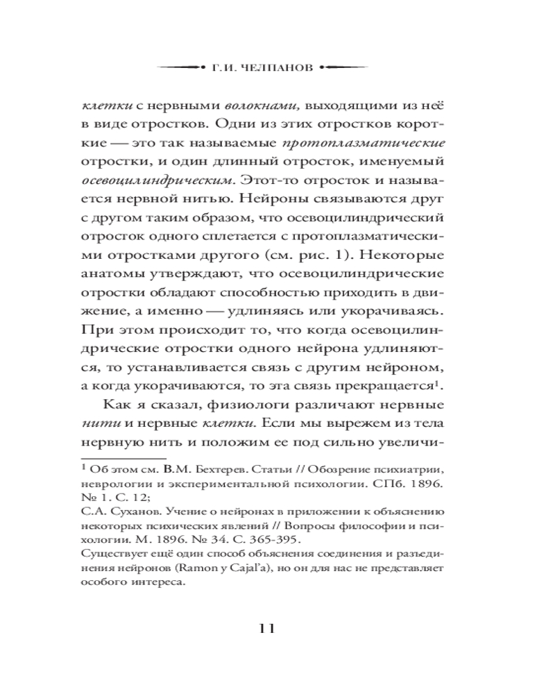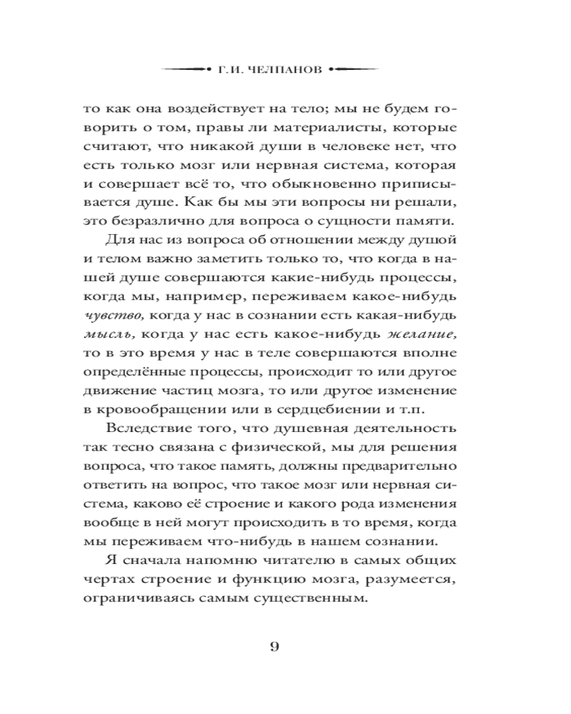| Челпанов Георгий Иванович (16.04.1862, Мариуполь, Украина — 13.02.1936, Москва, Россия) — русский философ и психолог. С 1882 по 1887 г. получил образование на историко-филологическом факультете Новороссийского университете в Одессе. С 1890 г. работал на кафедре истории философии Московского университета, с 1892 г. — в Киевской университете. Профессор психологии и философии Киевского (1897–1906) и Московского (1907–23) университетов. В 1910–11 гг. посетил... |