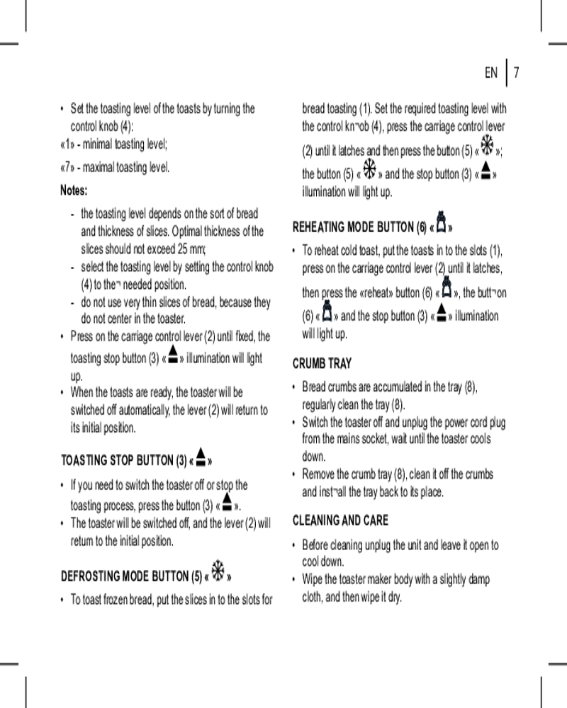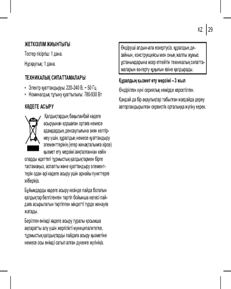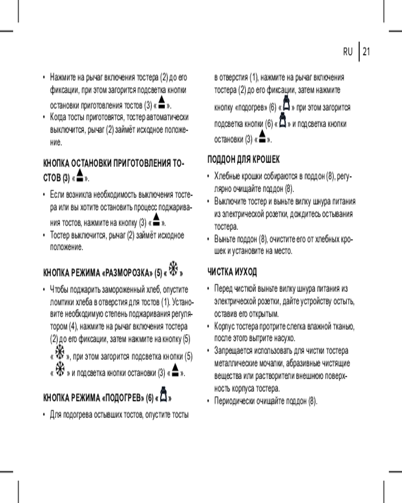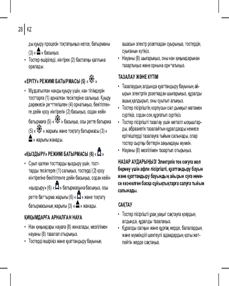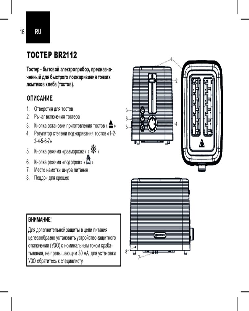 💳 Оплатить за товар можно при получении 🇰🇿 Есть бесплатная доставка по Казахстану от 1 дня 🎁 Копите бонусы с каждой покупки Приготовьте вкусные хрустящие тосты в BR2112. Тостер сможет поджарить хлеб за считанные минуты. Что еще нужно для сытного и вкусного завтрака? С семью режимами обжарки готовьте именно те тосты, которые больше предпочитаете. С функцией «Разморозка» разогрейте замороженный хлеб, и он не превратится во влажный мякиш. |