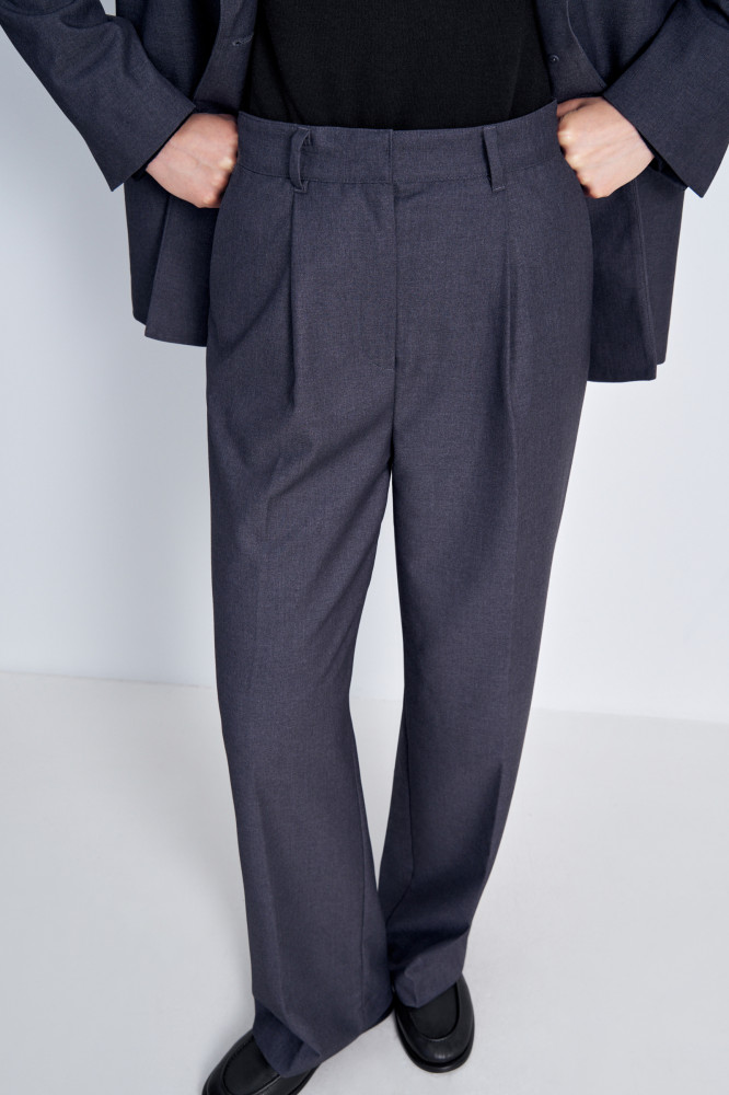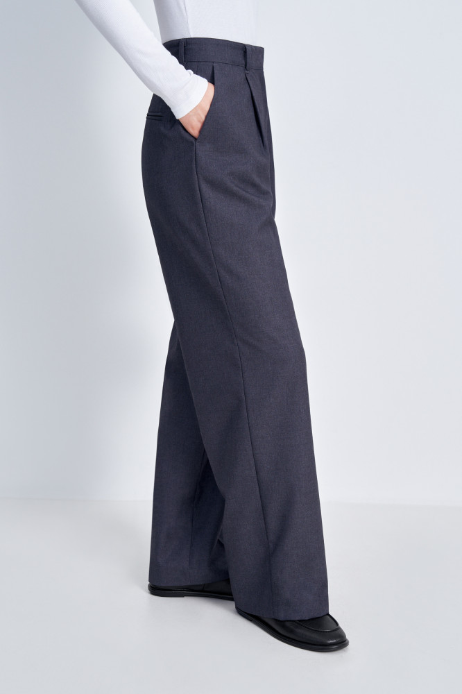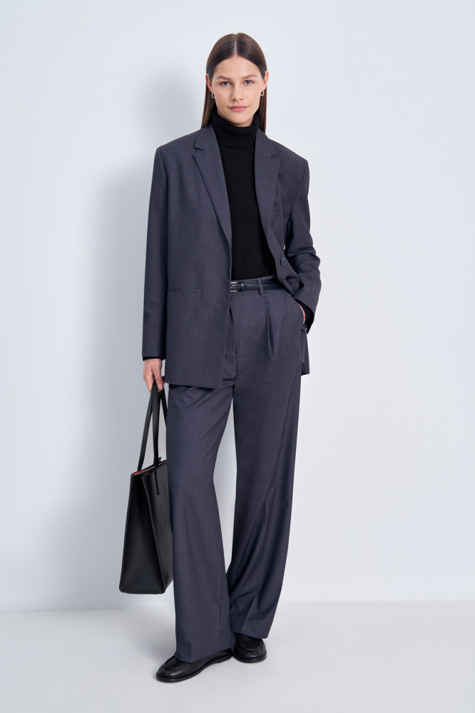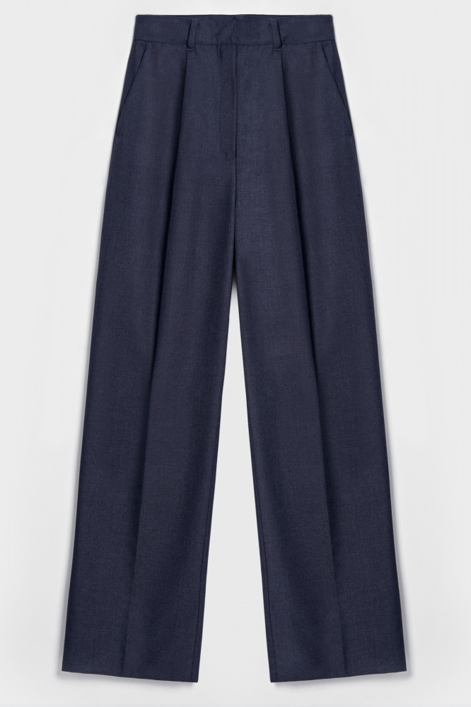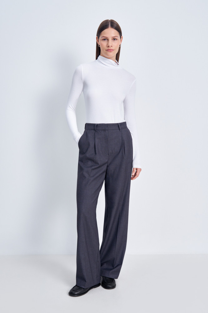 Женские брюки со стрелками и силуэтом Boyfit. Выполнены из шелковистой смесовой ткани, приятно прилегают к телу и сохраняют свободу движений. Брючины широкого кроя и высокая посадка добавляют образу изысканности и подчеркивают силуэт. Эти брюки подойдут для создания как деловых, так и повседневных образов.