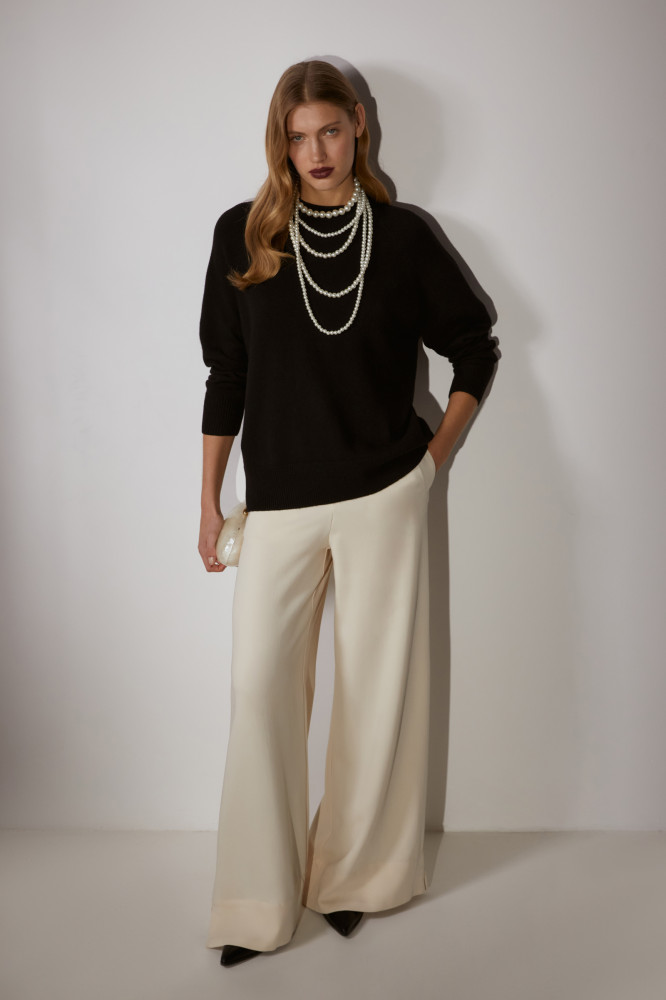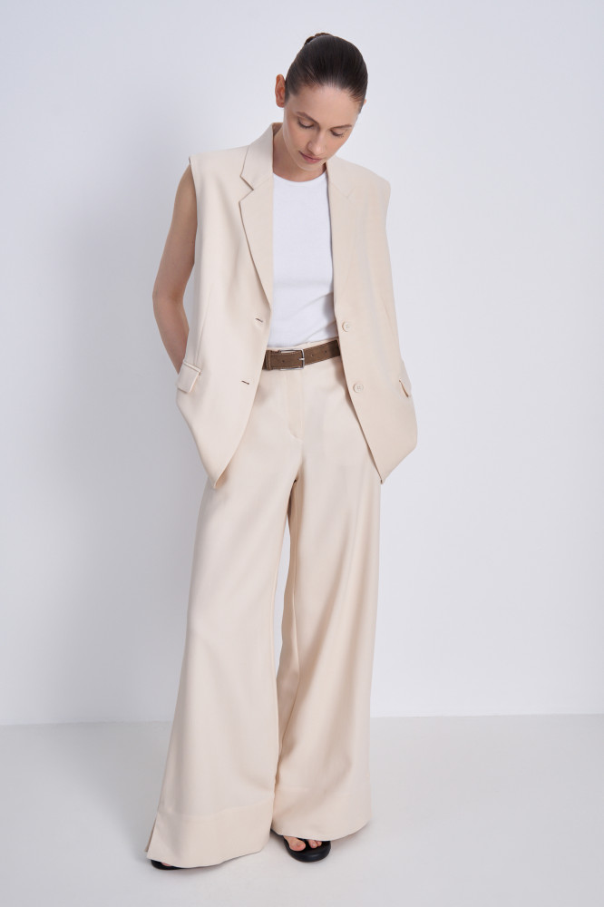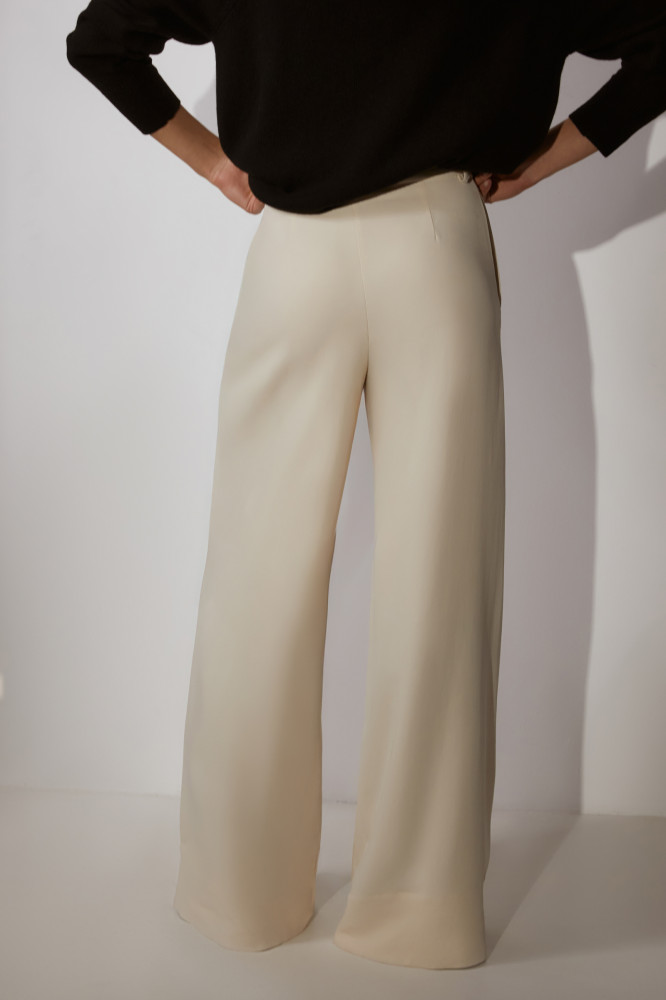 Женские брюки с высокой посадкой подойдут как для повседневных образов, так и для официальных мероприятий. Удобная длина и качественный материал делают модель универсальной для любого события. Лаконичный дизайн брюк легко сочетать как с классическими рубашками и блузками, так и с более неформальными футболками, топами и лонгсливами.