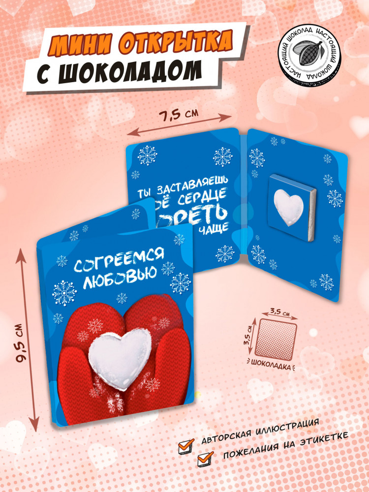 ChokoCat Мини-открытка с шоколадом «Согреемся любовью»