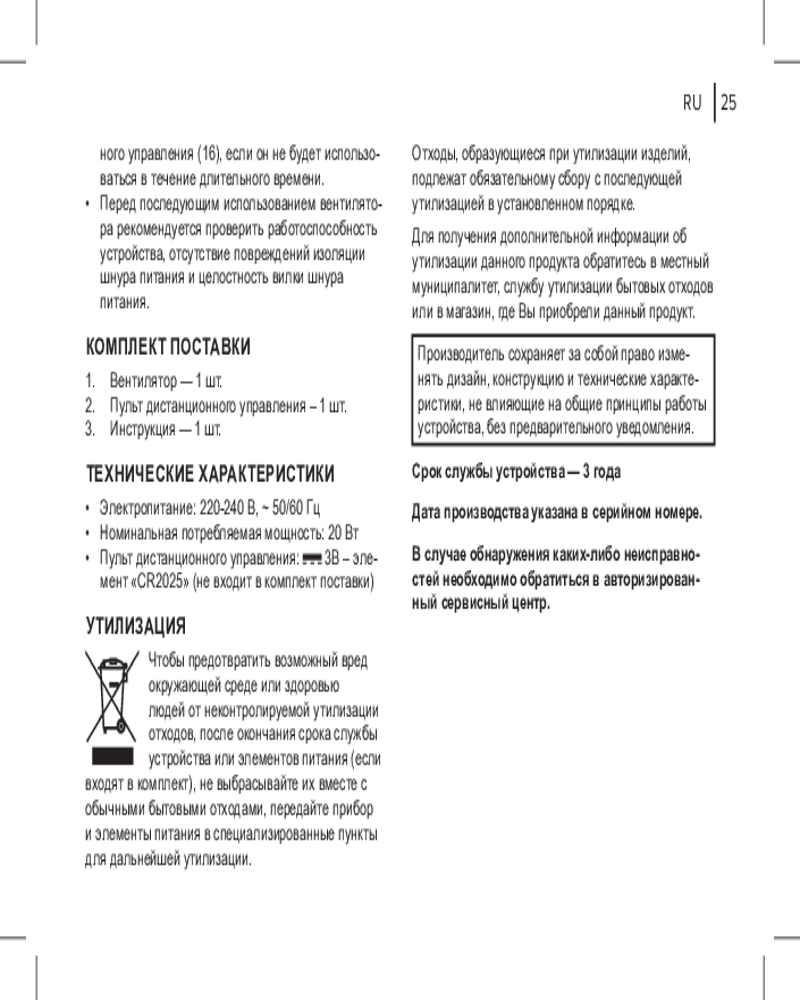 • пульт дистанционного управления (элемент питания CR2025 не входит в комплект поставки);