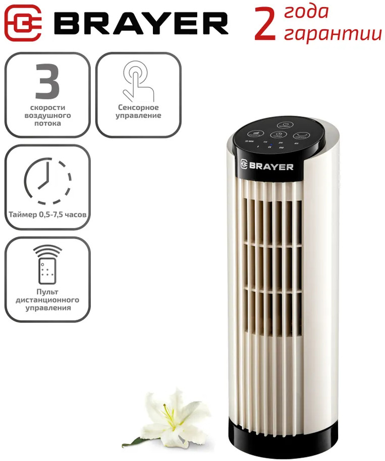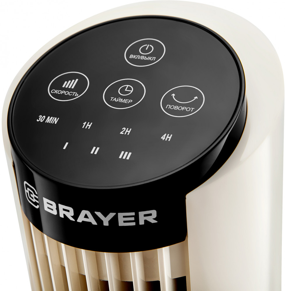 Настольный колонный вентилятор. Вентилятор имеет компактный размер, его высота всего 33 см. Благодаря этому он не займет много места — его можно разместить на рабочем столе или прикроватной тумбочке. Устойчивая конструкция с вращением корпуса на 70° позволит эффективно охладить окружающее пространство. Благодаря интуитивно-понятной сенсорной панели управления вы с легкостью сможете выбрать оптимальный режим работы. С помощью удобной ручки Вы сможете с легкостью перемещать вентилятор в любое место в Вашем доме. В комплекте с вентилятором поставляется пульт дистанционного управления.