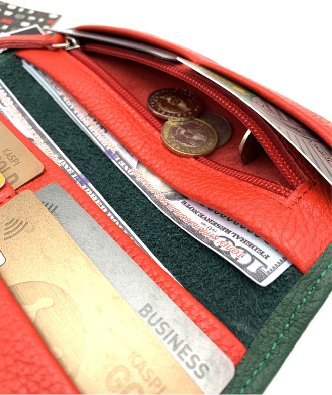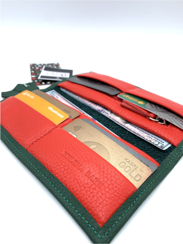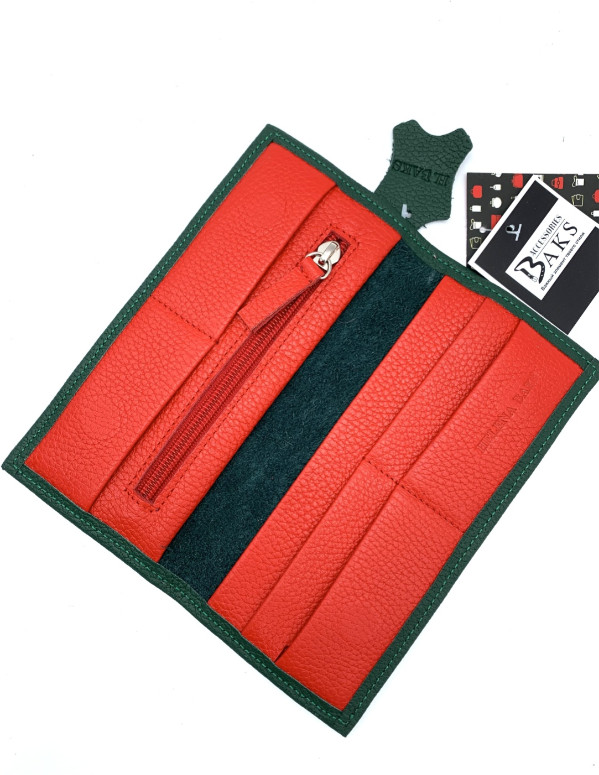 Стильное портмоне зеленое с красным из 100% натуральной тельячьей кожи собственного производства от Baks accessories — идеальный выбор для тех, кто ценит качество, функциональность и элегантный дизайн. Наше портмоне создано с учетом всех тенденций современной моды, сохраняя при этом высокие стандарты ручной работы и долговечности.
