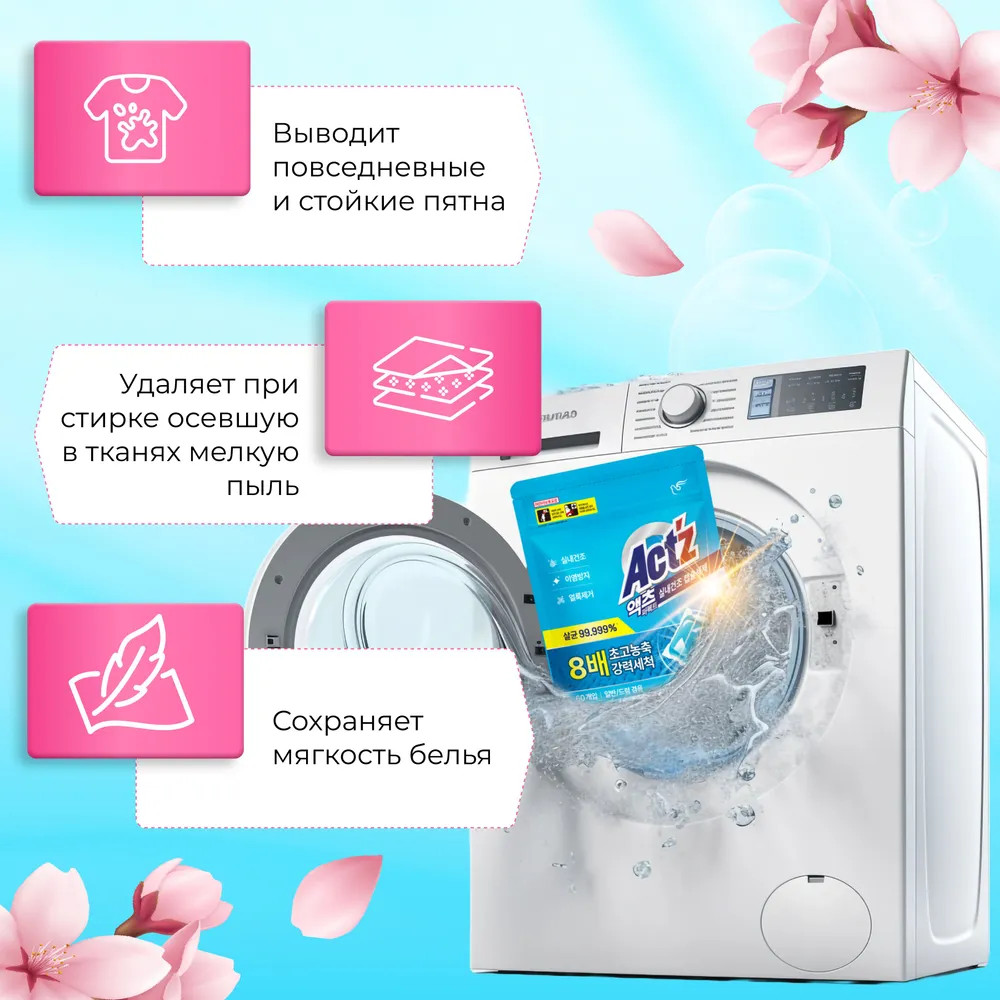 • удаление бактерий 99,999% — эффект сравним с кипячением белья;