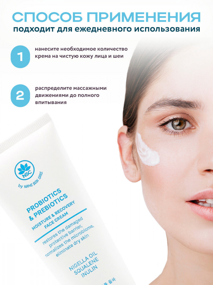 Name skin care Крем для лица восстанавливающий с пребиотиками и пробиотиками «Probiotics & Prebiotics Moisture & Recovery Face Cream»