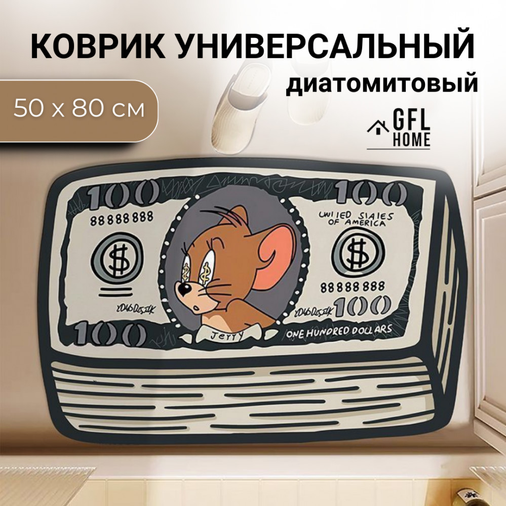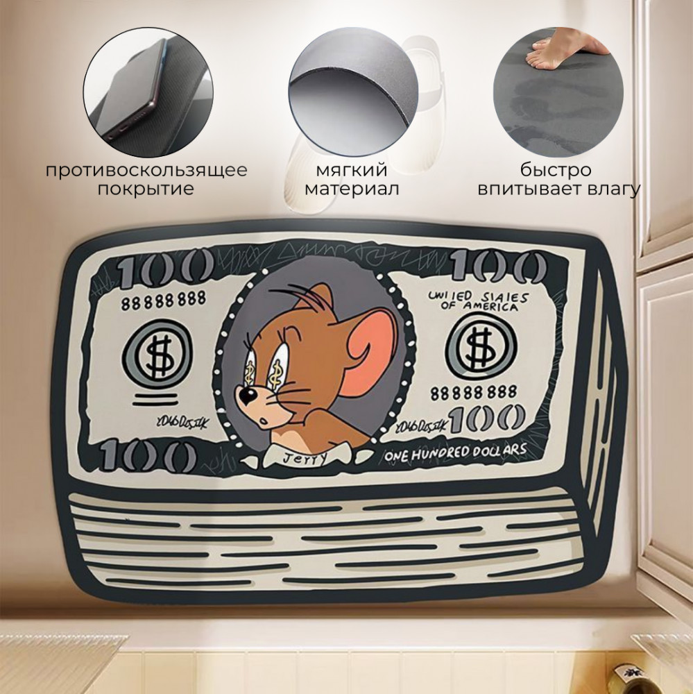 Диатомитовый коврик размером 80 × 50 см — это не только практичный аксессуар, но и стильный акцент для вашего интерьера! На его поверхности изображен культовый персонаж Том из мультфильма «Том и Джерри» на фоне 100-долларовой купюры — необычное и веселое сочетание, которое добавит оригинальности в ваш дом.