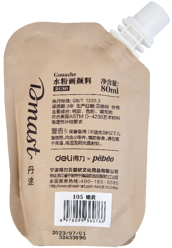 Гуашь Dmast — художественные краски для всех уровней мастерства и видов творчества. Обладают очень высокой укрывистостью, не меняют цвет после высыхания и разбавления водой, имеют хорошую светостойкость. Гарантируют идеальную цветопередачу, благодаря высокой концентрации пигментов. После высыхания красочный слой имеет матовый финиш. Гуашь Dmast при работе с водой позволяет имитировать акварельные эффекты. Произведена из натурального высококачественного сырья: пигменты равномерного тонкого помола и связующее. Гуашь безопасна и не имеет запаха.