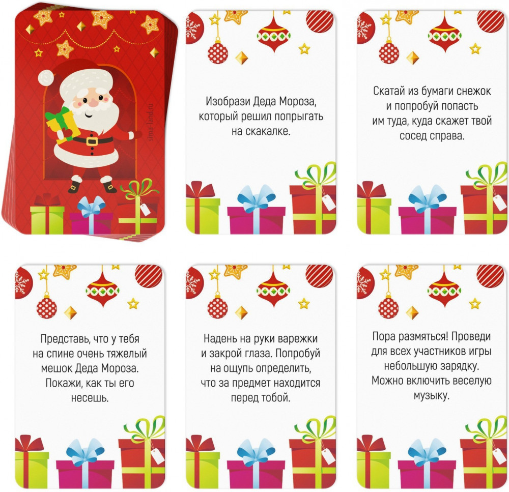 💳 Оплатить за товар можно при получении 🇰🇿 Есть бесплатная доставка по Казахстану от 1 дня 🎁 Копите бонусы с каждой покупки Серия: Фанты Подвижные фанты для всей семьи. Для тех, кто ведёт активный образ жизни и собирается праздновать Новый год в кругу семьи или друзей, мы подготовили тематические фанты. По очереди вытягивайте карточки, зачитывайте задания и выполняйте их. Вот и все правила! |
