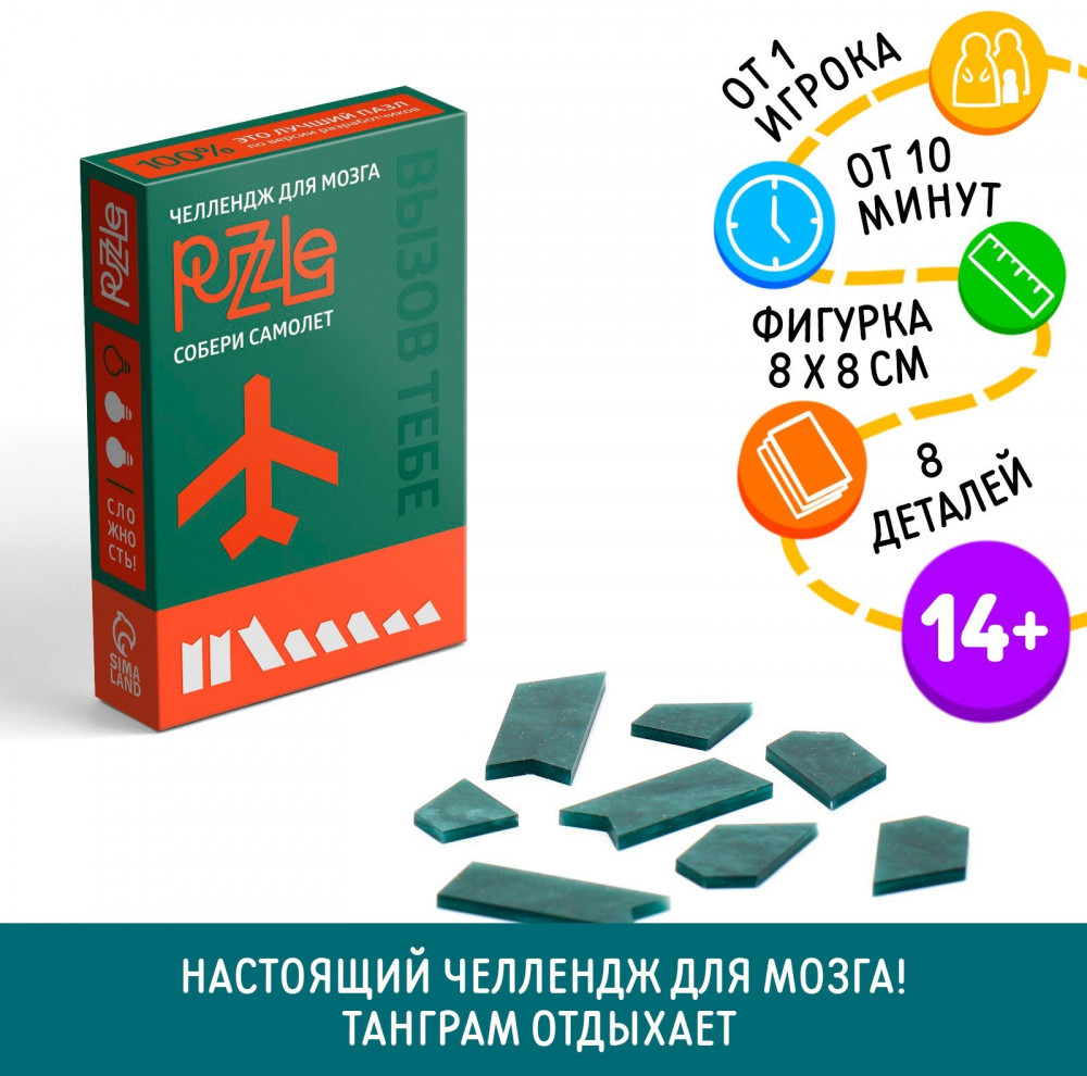Лас Играс Головоломка «Собери самолёт»В данный момент этот товар отсутствует в продаже. Возможно, у нас найдется аналогичный или похожий товар здесь. Серия: Игры-головоломки Настоящий челлендж для мозга! Любите собирать танграм, но хотите задачки посложнее? В этом пазле вас ждут 8 деталей самой разной формы. Они так и хотят, чтобы их поскорее собрали! Что нужно делать? Ваша задача — собрать самолет из всех имеющихся деталей. А самое интересное, что ответа нет, поэтому придётся хорошенько поломать голову. Удачи! |