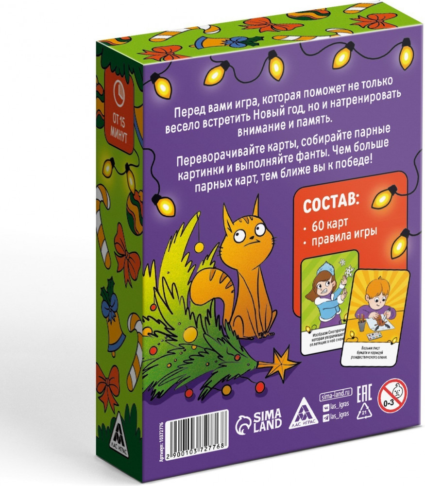 Перед вами игра, которая поможет не только весело встретить Новый год, но и натренировать внимание и память. Переворачивайте карты, собирайте парные картинки и выполняйте фанты. Чем больше парных карт, тем ближе вы к победе!