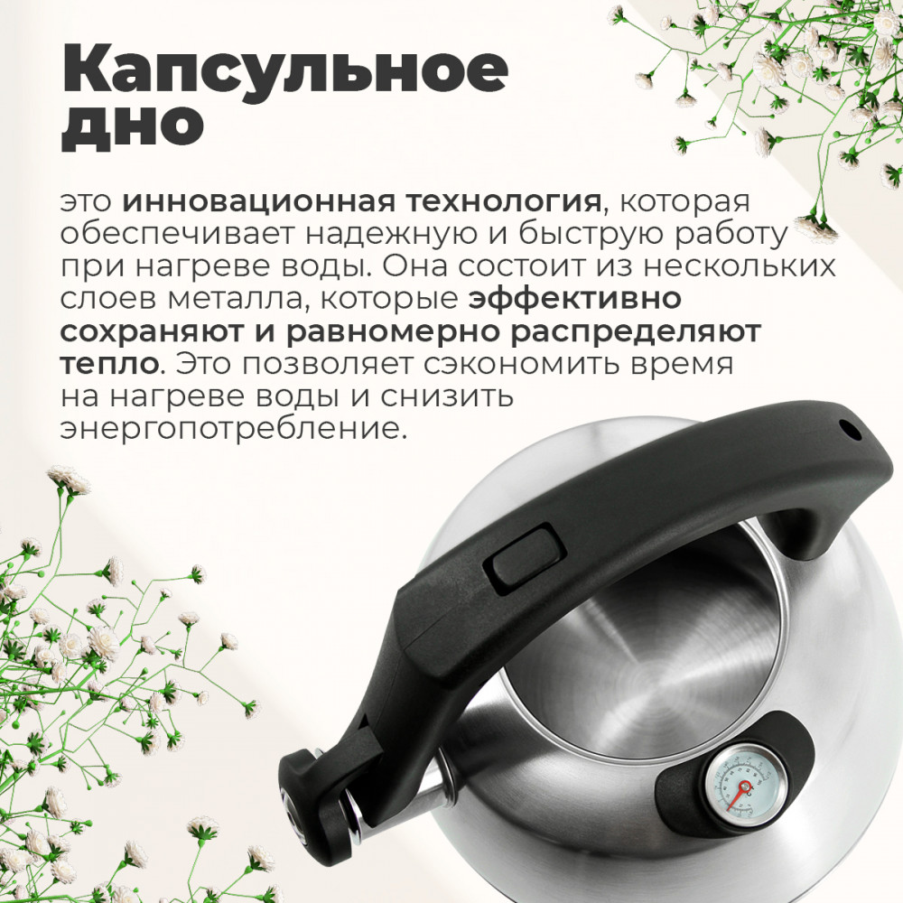 💳 Оплатить за товар можно при получении 🇰🇿 Есть бесплатная доставка по Казахстану от 1 дня 🎁 Копите бонусы с каждой покупки Серия: Napoli Чайник со свистком P-650205 Napoli, 2,5л. Модель выполнена по специальной пресс-форме с толщиной боковых стенок 0,4мм. Трехслойное дно, выполненное по технологии капсулирования, не деформируется и служит для равномерного распределения тепла. В чайник встроен термометр для контроля температуры воды. Ненагревающаяся нейлоновая ручка с кнопкой для открывания носика. Безопасный и громкий свисток вовремя проинформирует, что вода закипела. Высокопрочное покрытие чайника сохраняет отличный внешний вид изделия намного дольше. Подходит для всех типов нагревательных поверхностей. Материал нержавеющая сталь. |