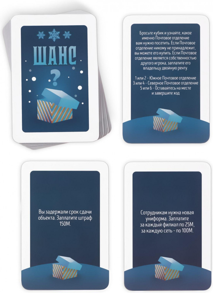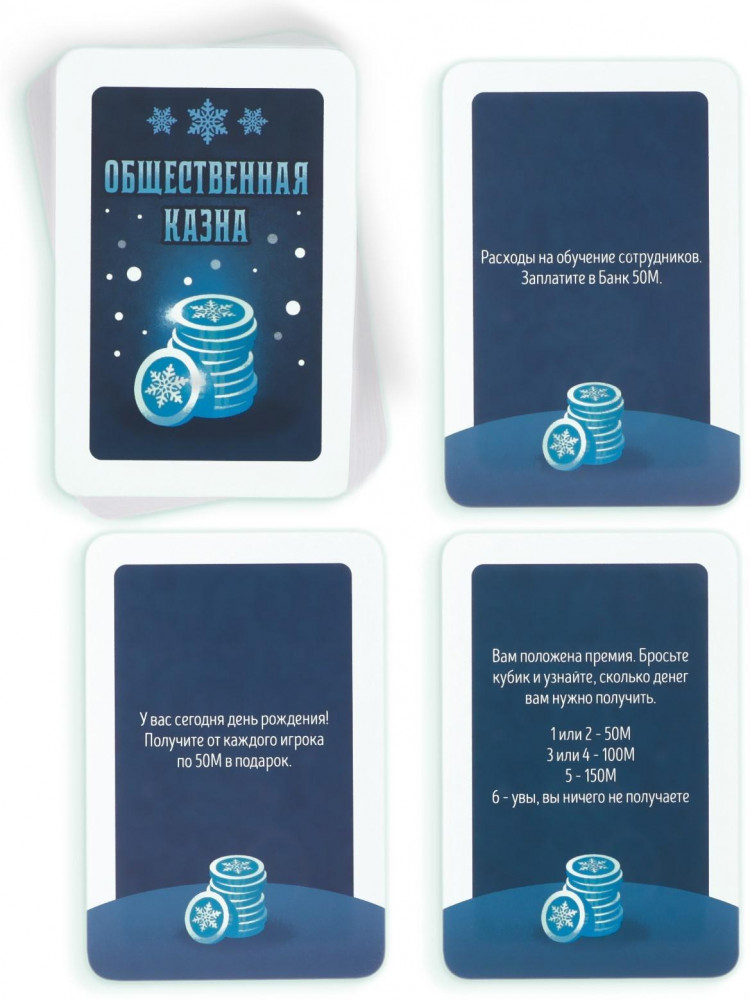 Также на игровом поле есть другие обозначения, которые необходимо учитывать. Например, заплатить штраф, вытянуть карту из колоды «Общественная казна» или «Шанс» и выполнить то, что там написано.