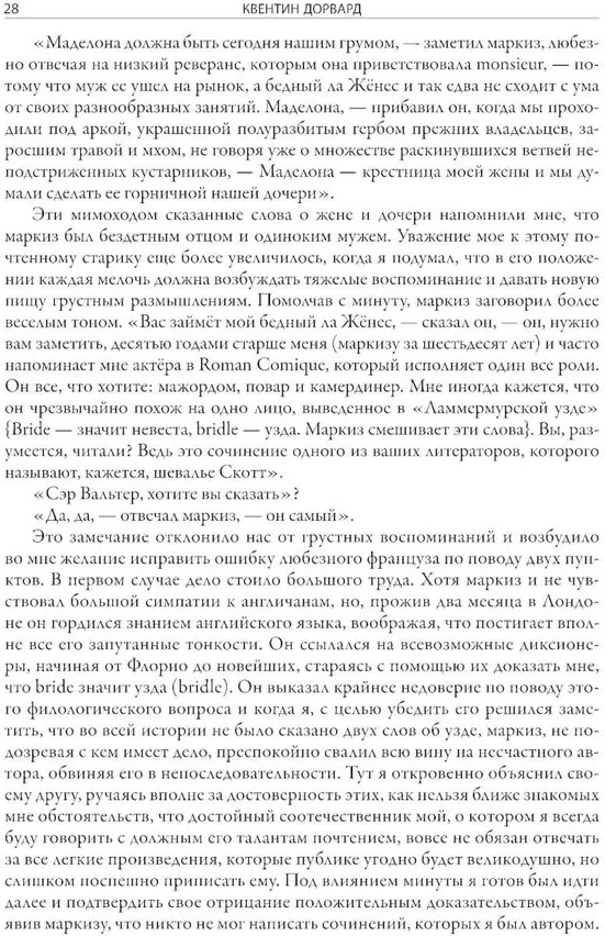 💳 Оплатить за товар можно при получении 🇰🇿 Есть бесплатная доставка по Казахстану от 1 дня 🎁 Копите бонусы с каждой покупки Серия: Библиотека мировой литературы Вальтер Скотт (1771–1832) — шотландский писатель, поэт, переводчик и адвокат. Будущий литератор родился в Эдинбурге, в многодетной семье юриста Вальтера Скотта и его жены Энн Резерфорд, дочери профессора Эдинбургского университета. В детстве мальчик тяжело заболел, и хотя, благодаря стараниям родителей и родственников, ему удалось пойти на поправку, писатель до конца жизни хромал и имел слабое здоровье. В кругу семьи ему часто рассказывали о захватывающих событиях из шотландской истории и читали стихи, ребенка охотно знакомили с шотландскими народными сказками и легендами. Так в нем зародился интерес к культуре, фольклору и истории Шотландии, который определил направление его творчества в будущем. Сначала Вальтер намеревался пойти по стопам отца и стать адвокатом: в 1792 году он окончил юридический факультет и в течение нескольких лет работал по специальности, совмещая адвокатскую практику с общественной деятельностью и литературным трудом. Еще со времен учебы Скотт занимался переводами художественных произведений с немецкого языка, а затем увлекся сочинением стихов и собиранием народных сказок, баллад и легенд Шотландии, чему способствовали его рабочие поездки по стране. За написание собственных прозаических произведений, в частности исторических романов, Скотт взялся уже в зрелом возрасте. В них он стремился в точности передать особенности описываемой эпохи, подробнейшим образом прописать персонажей и, разумеется, привнести в повествование элементы фольклора. Первые такие тексты писатель публиковал под псевдонимом, сохраняя благодаря этому анонимность вплоть до 1827 года. К их числу относится и впервые вышедший в свет в 1823 году роман «Квентин Дорвард». Его главный герой — молодой шотландский дворянин, по неосторожности попавший в круговорот политических интриг. События романа разворачиваются во Франции XV столетия. Юного Квентина ждут невероятные приключения, жестокие битвы и первая любовь. Текст произведения в данном издании дополняют подробные примечания и изящные, полные деталей изображения, запечатлевающие персонажей и достоверно демонстрирующие костюмы, интерьеры и пейзажи средневековой Европы. |