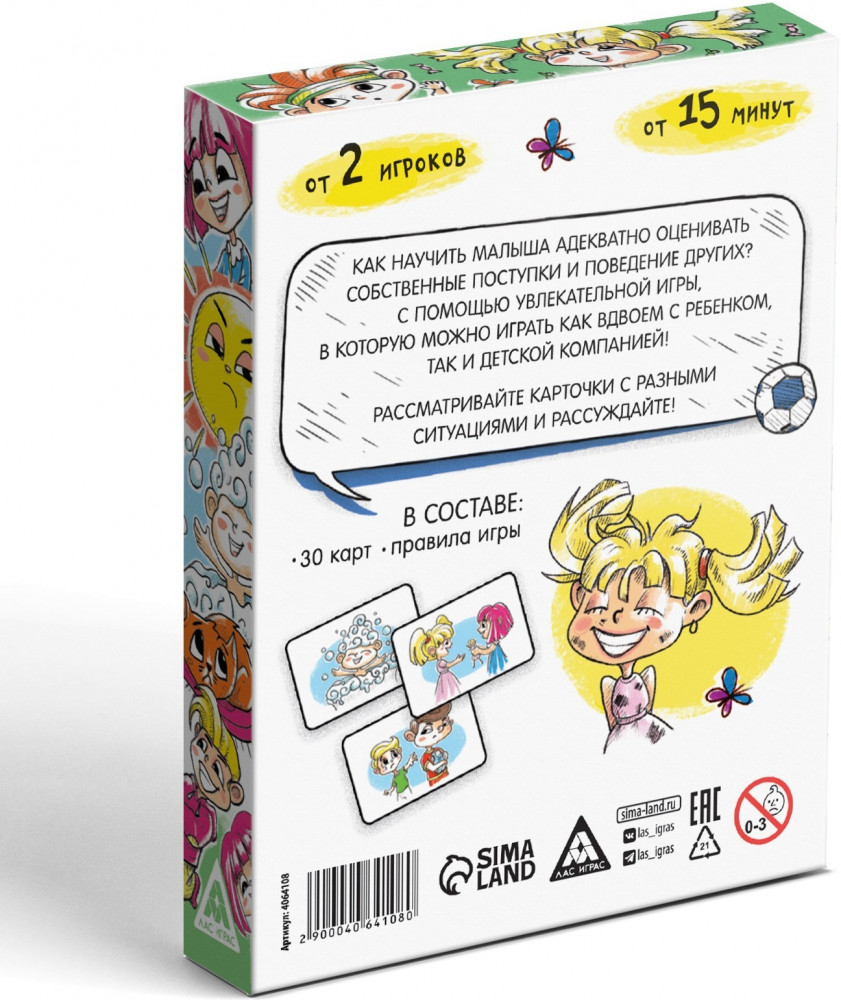 💳 Оплатить за товар можно при получении 🇰🇿 Есть бесплатная доставка по Казахстану от 1 дня 🎁 Копите бонусы с каждой покупки Серия: Совместные занятия Учимся оценивать свои поступки. Как научить малыша адекватно оценивать собственные поступки и поведение других людей? С помощью увлекательной игры, в которую можно играть как вдвоём с ребёнком, так и компанией детей! Рассматривайте карточки с разными ситуациями и рассуждайте. |