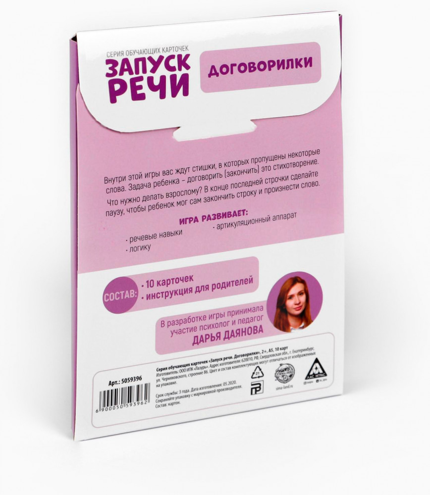 Лас Играс Карточки обучающие «Запуск речи. Договорилки»В данный момент этот товар отсутствует в продаже. Возможно, у нас найдется аналогичный или похожий товар здесь. Серия: Запуск речи Внутри этой игры вас ждут небольшие стишки, в которых пропущены некоторые слова. Задача ребёнка — договорить (закончить) стихотворение. Что нужно делать взрослому? Зачитать стихи, а в конце последней строчки сделать паузу, чтобы малыш мог сам закончить строку и произнести слово. Если ребёнку хорошо знакомо стихотворение, он сначала начинает предугадывать последние рифмованные слова в строчках, а потом пытается их договаривать. Рассказывая малышу стихотворение, делайте паузы в соответствующих местах, поощряя его тем самым произнести последнее слово в строчке. |