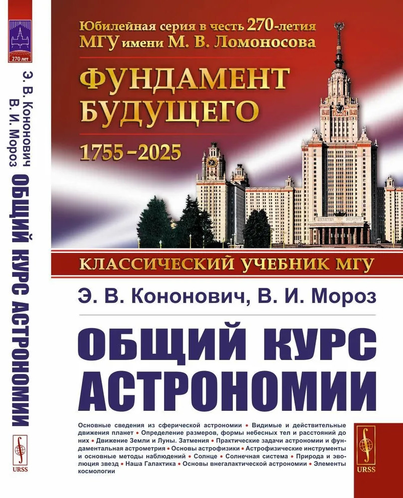 Общий курс астрономииЭдвард Владимирович Кононович, Василий Иванович Мороз В данный момент этот товар отсутствует в продаже. Возможно, у нас найдется аналогичный или похожий товар здесь. Серия: Классический университетский учебник Настоящая книга написана в соответствии с программой курса общей астрономии, утвержденной для студентов, обучающихся по специальности «астрономия». Основное внимание уделено формированию важнейших понятий астрономии и новейшим достижениям в этой науке. Дано представление о различных разделах и методах современной астрономической науки, объединенных общей целью всестороннего исследования природы Вселенной. |