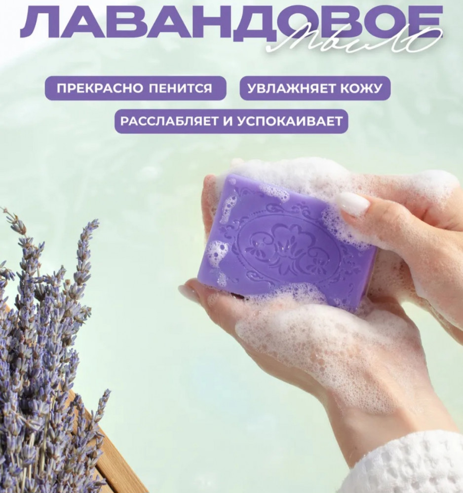 • мыло ручной работы: из природных ингредиентов, с заботой о коже и легким ароматом лаванды;