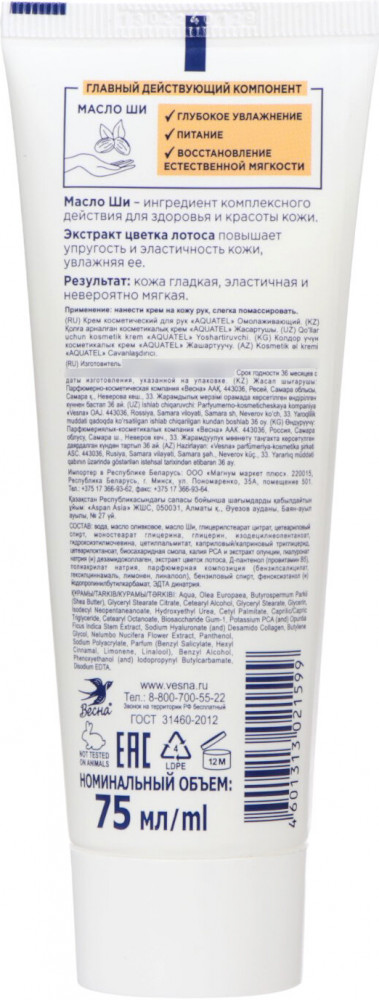 Aquatel Крем для рук с маслом ши «Омолаживающий»