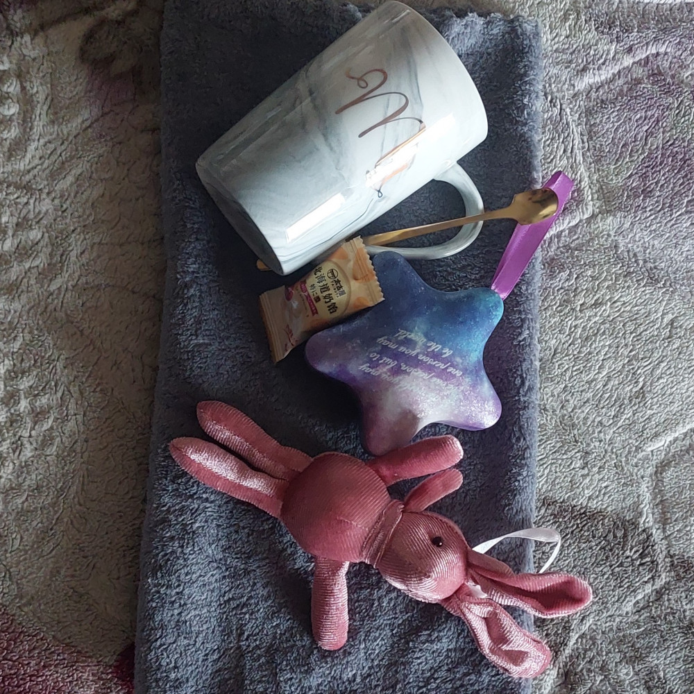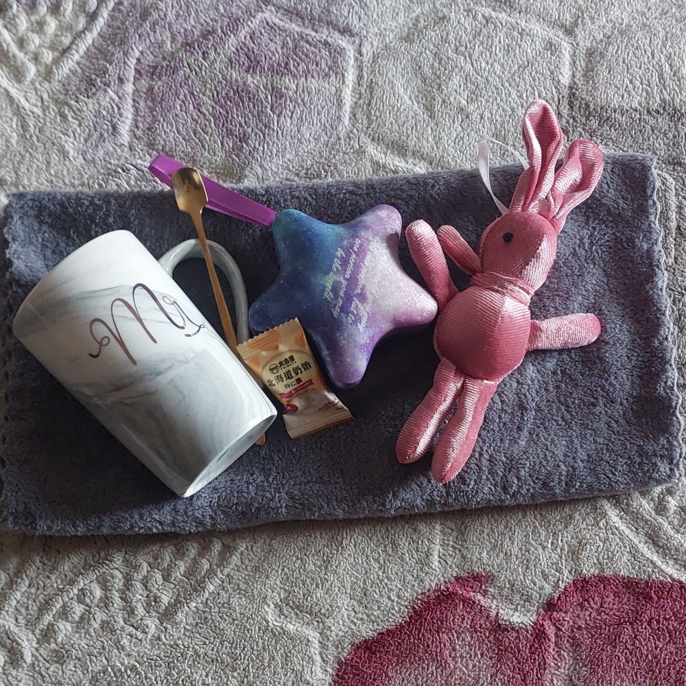 кружка вытянутая, ложечка другая ,не круглая, игрушка грязно-розового цвета, баночка с конфетами сиреневого цвета в виде звезды, конфеты молочные. Не соответствует описанию и тем,что на картинке!