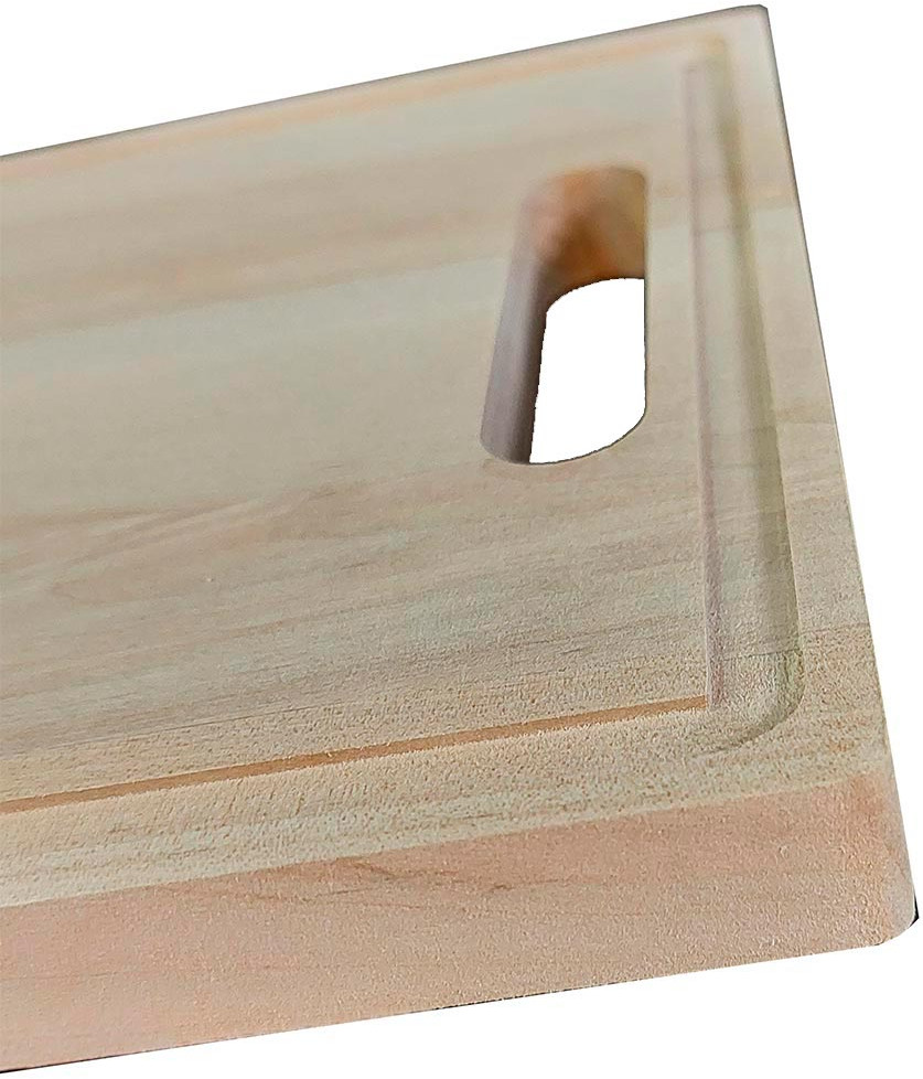 Деревянная разделочная доска, изготовленная из массива березы, идеально подходит для эффективной работы на кухне. Массив березы не только придает ей элегантный и долговечный вид, но и обладает превосходными антимикробными свойствами, что делает доску идеальной для разделки продуктов питания. Поверхность доски покрыта маслом, что не только подчеркивает природную фактуру дерева, но и защищает ее от влаги и загрязнений, обеспечивая долгий срок службы и легкость в уходе. Такое покрытие помогает сохранять деревянную поверхность в отличном состоянии, придавая изделию мягкий, приятный на ощупь вид. Одной из особенностей данной модели является наличие кровостока. Это позволяет стекать лишней жидкости, предотвращая ее попадание на рабочую поверхность стола.
