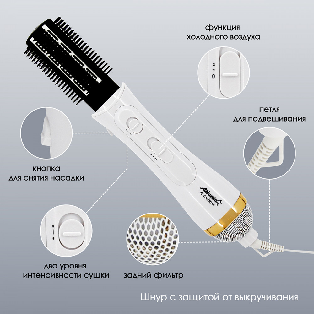 Atlanta Фен-щетка 5 в 1 ATH-6842-30% +276 качество неудобно пользоваться