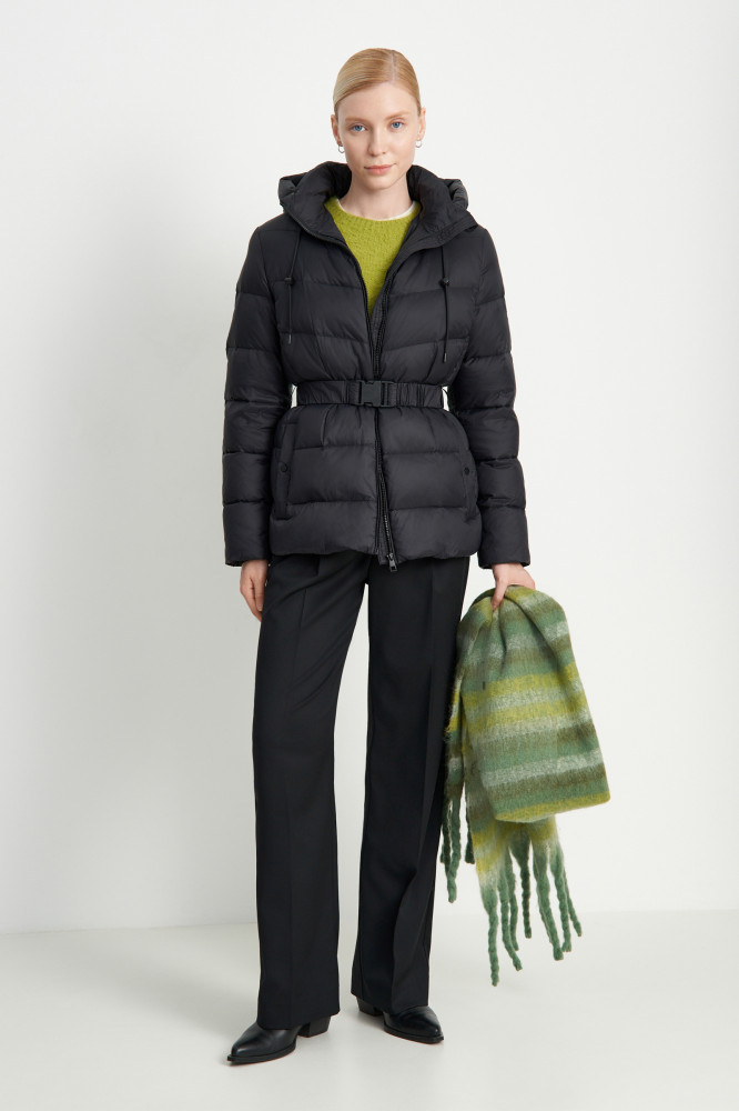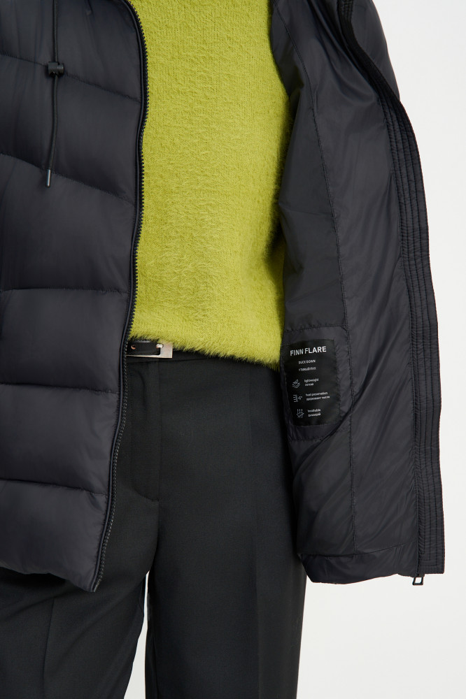 Этот пуховик защищает от холода при температуре до −10 градусов. Утиный пух — натуральный утеплитель, который отлично согревает даже в самый сильный мороз, обладая высокими теплоизоляционными свойствами. Приталенный силуэт пуховика можно подчеркнуть входящим в комплект поясом, создавая комфортный и элегантный образ. Модель оснащена удобной застежкой на молнию и воротником-стойкой, что обеспечивает надежную защиту от ветра и осадков. Съемный капюшон позволяет легко адаптировать изделие под любые погодные условия. Лаконичный дизайн пуховика идеально подходит для городских прогулок и активного отдыха, сочетая в себе функциональность и стиль.