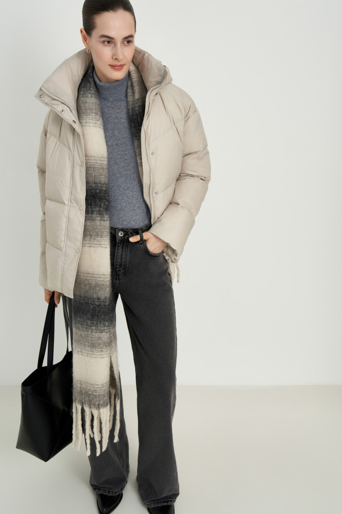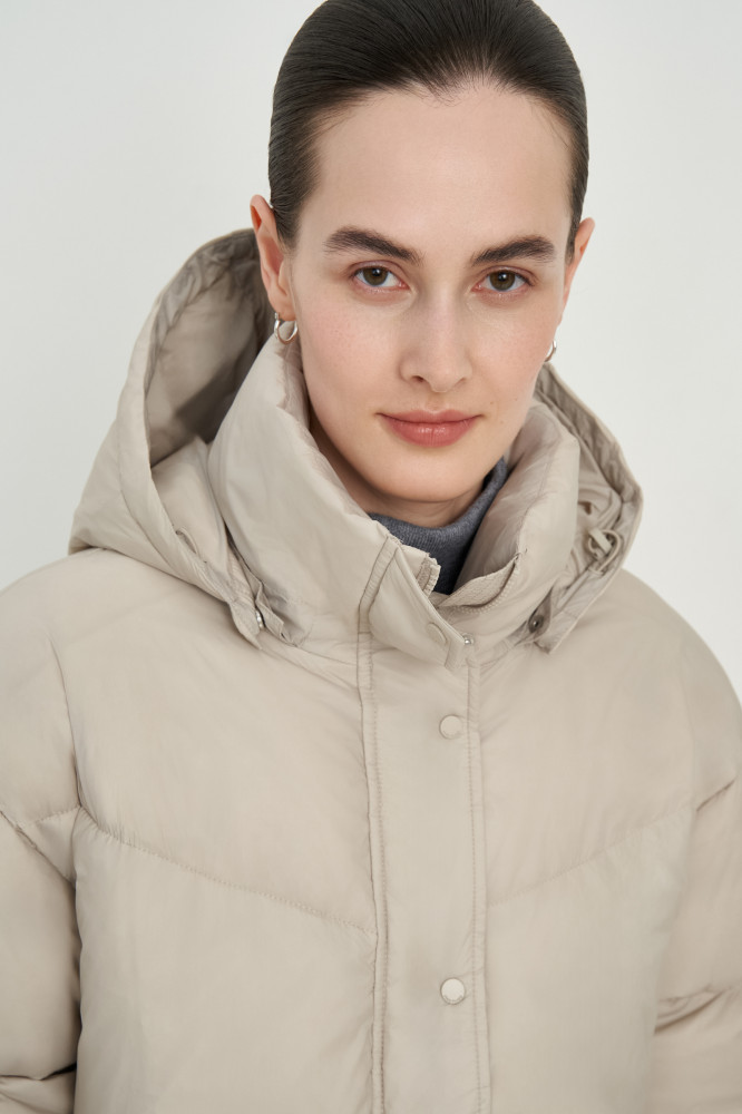 Пуховик обеспечивает надежную защиту от холода при температурах до −25 градусов благодаря высококачественному утеплителю из утиного пуха, который эффективно сохраняет тепло и обеспечивает комфорт в течение всего дня. Элегантный воротник-стойка защищает шею от холода и осадков. Съемный капюшон позволяет адаптировать пуховик под любые погодные условия. Свободный силуэт обеспечивает комфорт посадки и движений, что делает этот пуховик идеальным выбором для активного отдыха на свежем воздухе или повседневной носки. Стеганная ткань придает изделию современный вид и подчеркивает его стильный однотонный дизайн, который легко сочетать с любой одеждой.
