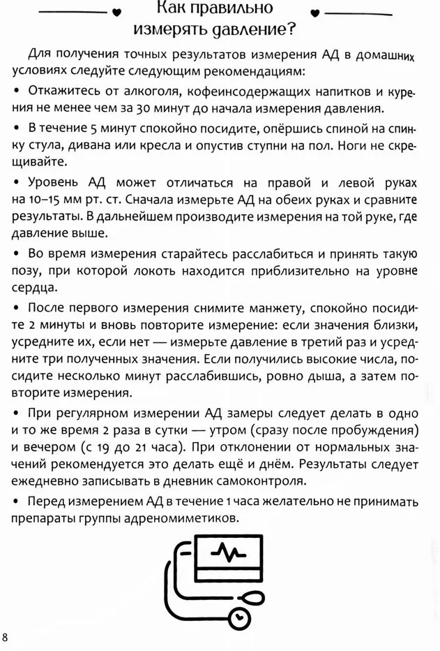 💳 Оплатить за товар можно при получении 🇰🇿 Есть бесплатная доставка по Казахстану от 1 дня 🎁 Копите бонусы с каждой покупки Дневник самоконтроля давления — это незаменимый инструмент для тех, кто заботится о своем здоровье и хочет систематично отслеживать изменения артериального давления. Этот удобный и практичный блокнот рассчитан на один год, что позволяет вам вести полноценный мониторинг своих показателей. С помощью данного дневника вы сможете записывать свои параметры в удобной и лаконичной форме, что облегчит анализ динамики изменений вашего состояния. Учет давления имеет ключевое значение для профилактики заболеваний и поддержания здоровья, и этот дневник станет надежным спутником на пути к гармонии и благополучию. |