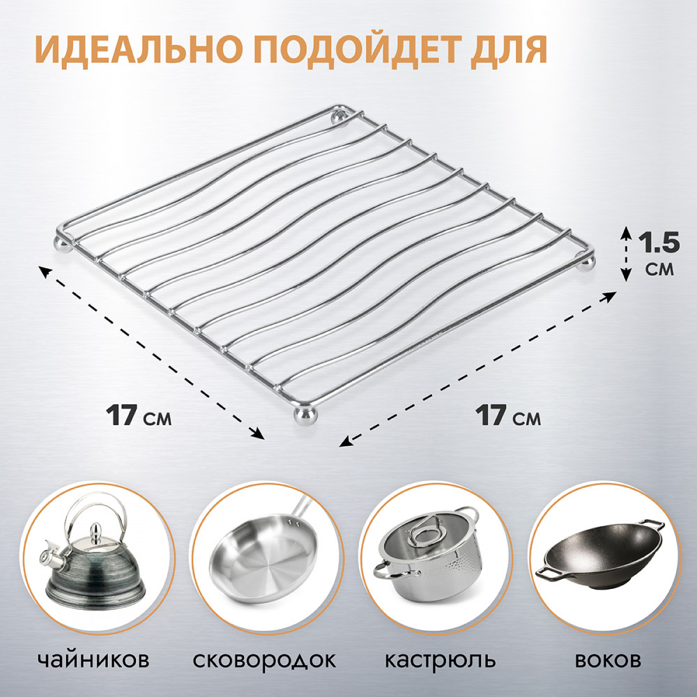 💳 Оплатить за товар можно при получении 🇰🇿 Есть бесплатная доставка по Казахстану от 1 дня 🎁 Копите бонусы с каждой покупки Серия: Filo di ferro Подставка под горячее идеально впишется в интерьер современной кухни. Подходит для сковородок, воков, кастрюль любого размера. Подставка сбережет вашу кухонную мебель от высоких температур. |