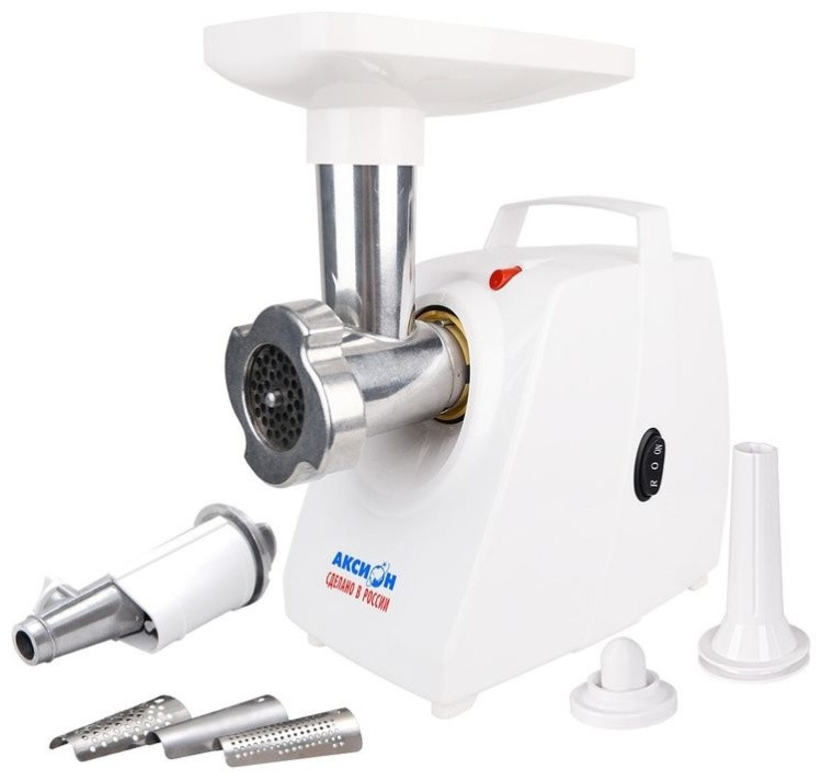 Аксион Мясорубка М 33.04В данный момент этот товар отсутствует в продаже. Возможно, у нас найдется аналогичный или похожий товар здесь. Электрическая мясорубка М33 «Аксион» повышенной мощности обеспечит получение до 1,7 кг фарша в минуту. Производительность — до 1,7 кг мяса в минуту. Двойная защита двигателя от перегрузки. Функция «реверс» для предотвращения наматывания жилок на шнек. Нож и решетка из нержавеющей стали. Удобное хранение шнура питания и решеток в отсеке с откидной крышкой. Высокое размещение шнековой камеры дает возможность использовать глубокую посуду для фарша. Ручка для переноски. Устойчивые нескользящие ножки из эластомера для фиксации мясорубки на поверхности стола. В комплектации 04 — приставка овощерезка с 3-мя барабанами, запасной колпачок (1 шт.), решетка с диаметром отверстий 4,9 мм. |
