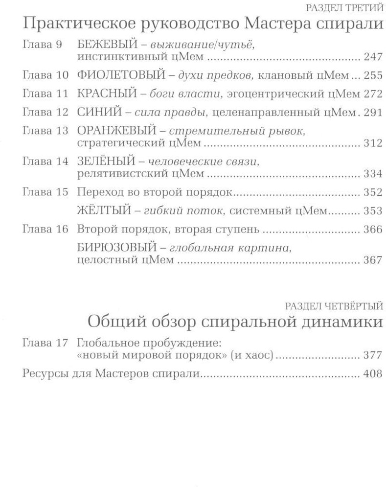 Эта книга представляет новую модель для понимания динамических сил человеческого взаимодействия — не только в бизнесе, но и в личной жизни, образовании и даже в геополитике. Она — идеальное пособие для менеджеров, консультантов и стратегов. Данная книга придаёт точность и силу пониманию ценностных систем человека и лидерству XXI века. Она соединяет концепцию мемов британского биолога Ричарда Докинза и подходы теории уровней бытия Клэра Грейвза, чтобы создать очень точный инструментарий управления глубочайшими изменениями в людях. |