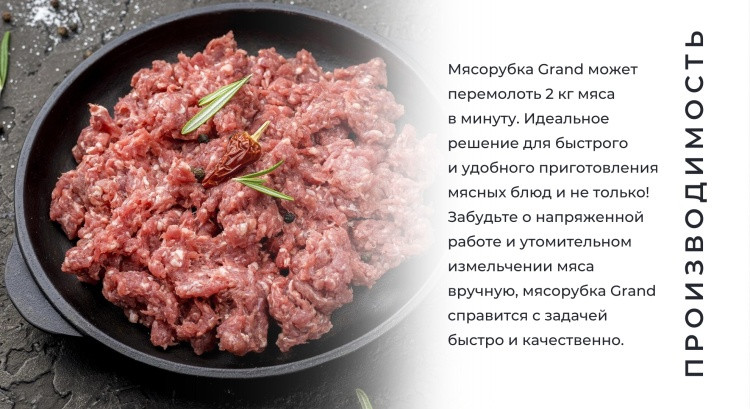 Grand Мясорубка GAMG-8096SMEMВ данный момент этот товар отсутствует в продаже. Возможно, у нас найдется аналогичный или похожий товар здесь. Приготовление домашних блюд станет проще с мясорубкой. Надежная, мощная и удобная в использовании, эта мясорубка станет незаменимым помощником на вашей кухне. Экономьте время и наслаждайтесь результатом с минимальными усилиями. В комплекте диск из нержавеющей стали 5 мм, диск из нержавеющей стали 8 мм, диск из нержавеющей стали «треугольник» для грубого помола, насадка для приготовления колбасок (3 шт. различные по диаметру), насадка Кеббе, толкатель, лоток металлический. |