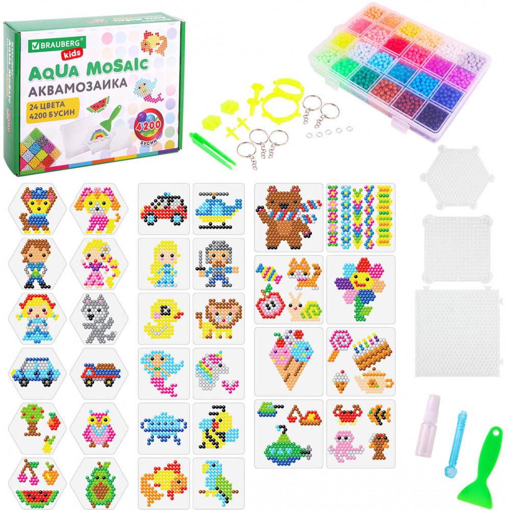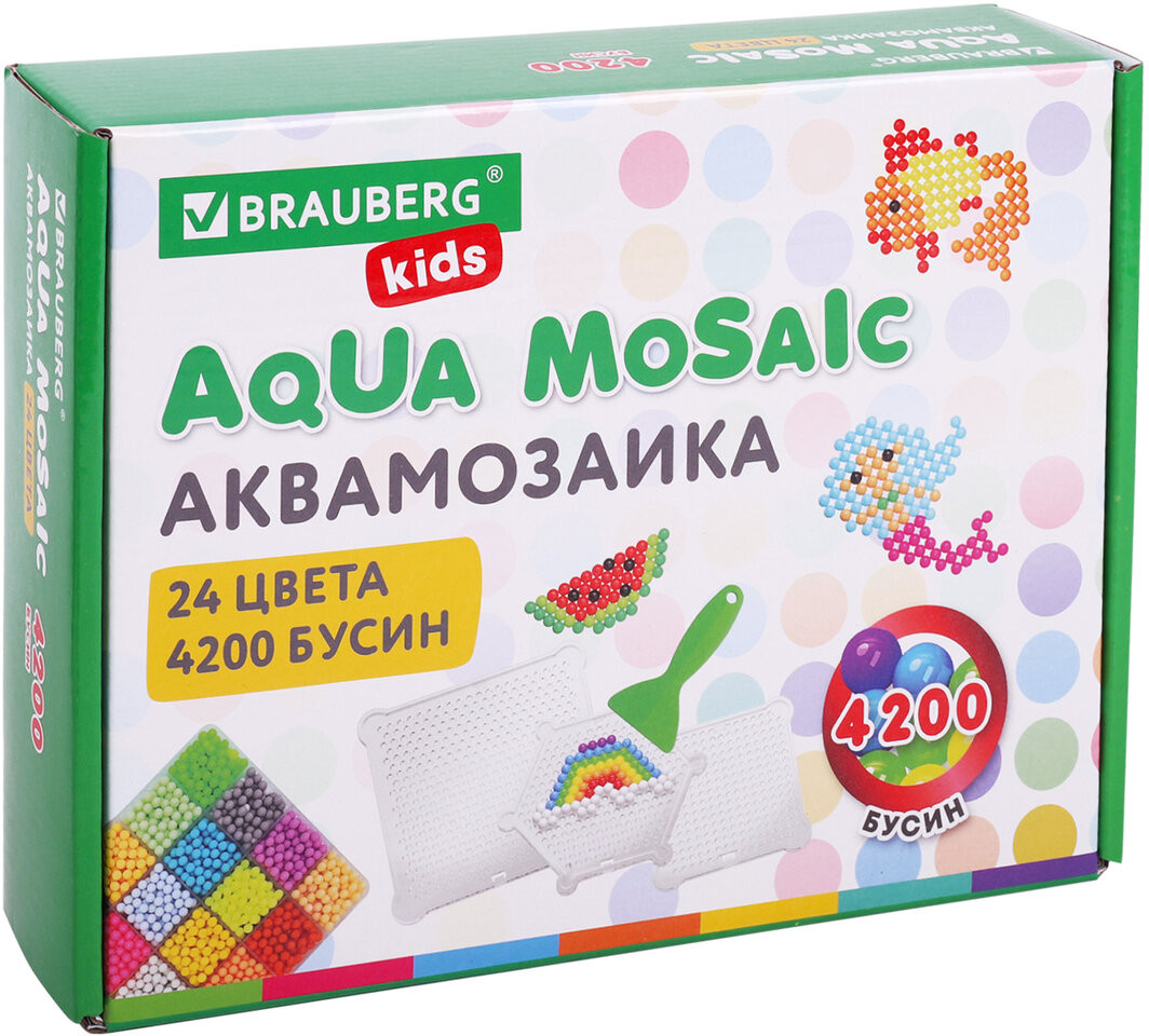 Серия: Kids Аквамозаика Brauberg Kids — это набор специальных бусин для создания картинок на трафаретах, входящих в набор. Бусины склеиваются между собой, если побрызгать на них обычной водой. Аквамозаика развивает у ребёнка усидчивость и креативное мышление.