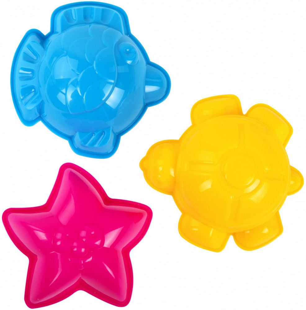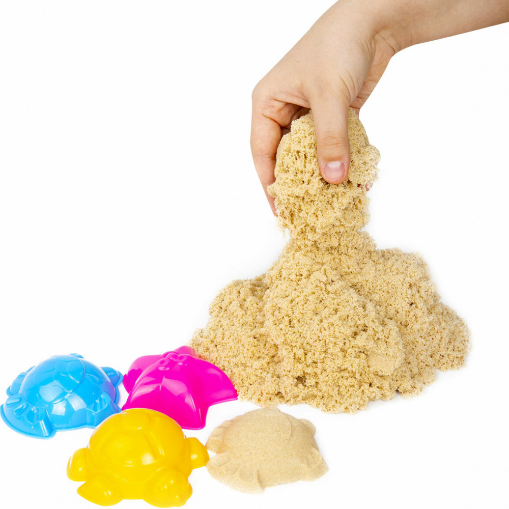 В наборе: кинетический песок песочного цвета (1500 г) и 3 формочки для лепки.