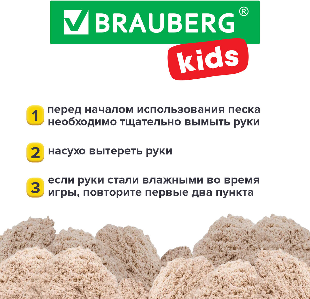 Кинетический песок для лепки Brauberg Kids идеально подойдет для детского творчества. Развивает мелкую моторику, образное мышление, способствует усидчивости и проявлению аккуратности. Безопасный кинетический песок Brauberg Kids по текстуре похож на влажный морской песок, но вместе с этим он абсолютно сухой, приятный на ощупь, воздушный и мягкий, прекрасно сохраняет форму во время лепки. Этот песок не засыхает, не рассыпается, не прилипает к рукам, может долго храниться в плотно закрытой таре, легко собирается с поверхности, и играть с ним можно снова и снова в любое время года. Песок сертифицирован, безопасен и не токсичен. Игры с песком рекомендованы в развивающих занятиях с детьми для получения благоприятного терапевтического эффекта.