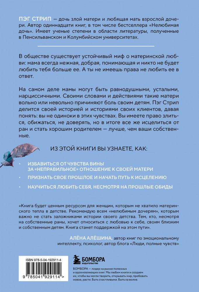 💳 Оплатить за товар можно при получении 🇰🇿 Есть бесплатная доставка по Казахстану от 1 дня 🎁 Копите бонусы с каждой покупки Серия: Травма и исцеление. Истории психотерапевтов Если вы чувствуете, что постоянно ставите себя на последнее место, чтобы «сохранить мир», если самый близкий человек причиняет вам боль или если вы любите кого-то и одновременно его боитесь, тогда эта книга для вас. |