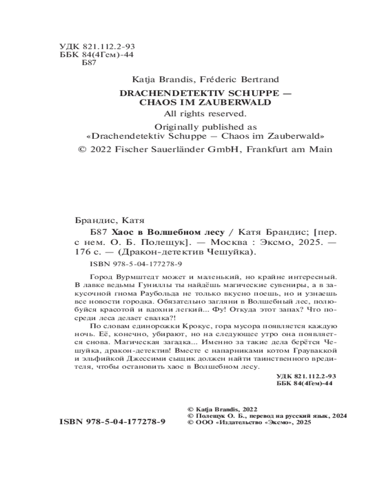 💳 Оплатить за товар можно при получении 🇰🇿 Есть бесплатная доставка по Казахстану от 1 дня 🎁 Копите бонусы с каждой покупки Серия: Дракон-детектив Чешуйка Книга от автора серий бестселлеров «Дети леса» и «Дети моря» Кати Брандис! |