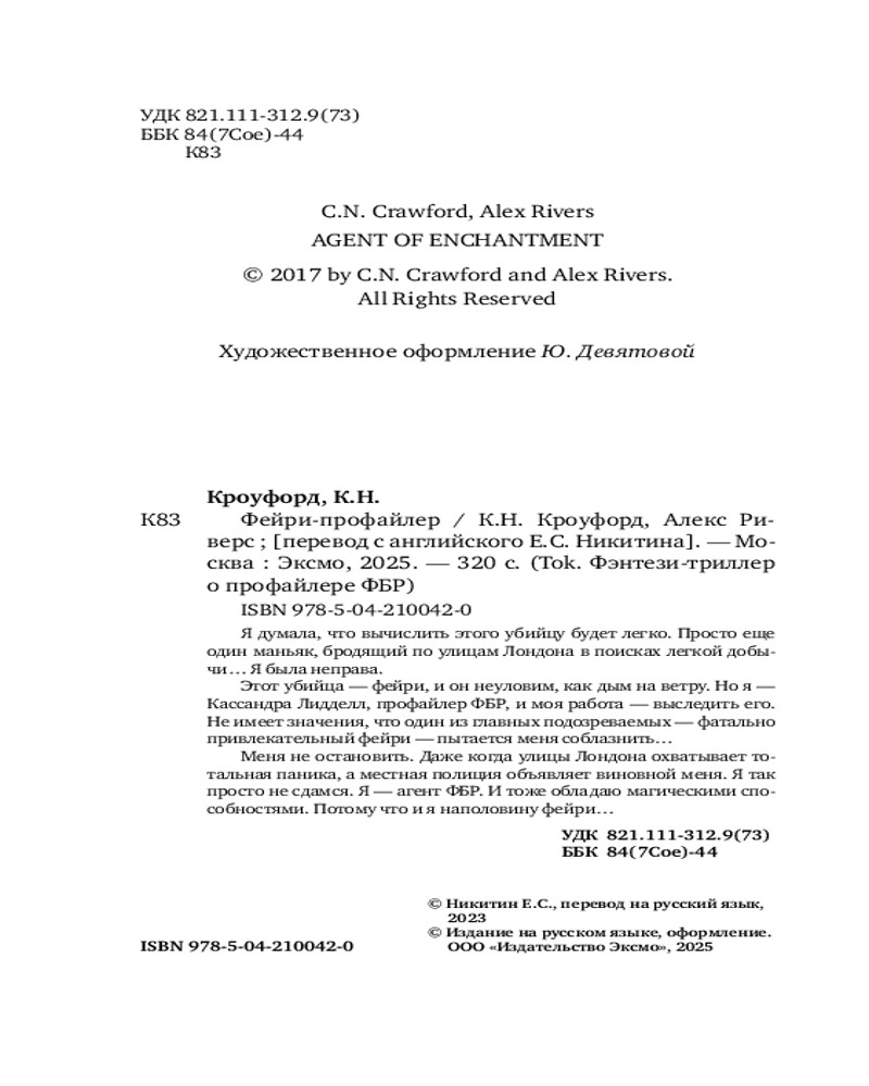 💳 Оплатить за товар можно при получении 🇰🇿 Есть бесплатная доставка по Казахстану 🎁 Копите бонусы с каждой покупки Серия: Tok. Фэнтези-триллер о профайлере ФБР (обложка с клапанами) Фейри живут среди нас. И один из них — серийный убийца... |