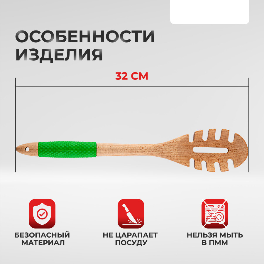 💳 Оплатить за товар можно при получении 🇰🇿 Есть бесплатная доставка по Казахстану от 1 дня 🎁 Копите бонусы с каждой покупки Серия: Albero Ложка для спагетти коллекция Albero. Лопатка изготовлена из дерева (бук), с силиконовой ручкой. Кухонные приборы из дерева: — отличаются возможностью использования с любыми антипригарными покрытиями — гигиеничны — устойчивы к впитыванию посторонних запахов Длина ложки — 32см. |